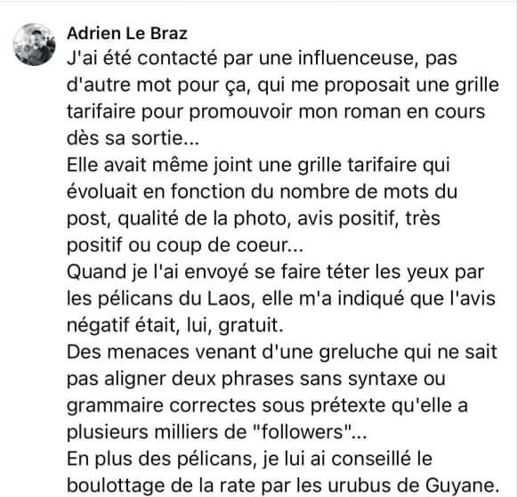 Il y a peu, on m’a contacté pour me dire qu’un auteur cherchait un influenceur littéraire pour parler de son roman.